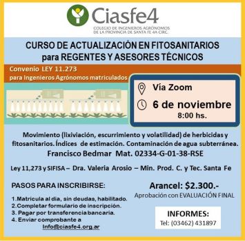 CURSO DE ACTUALIZACIÓN EN FITOSANITARIOS para REGENTES Y ASESORES TÉCNICOS vía Zoom - 6/11/2020.-