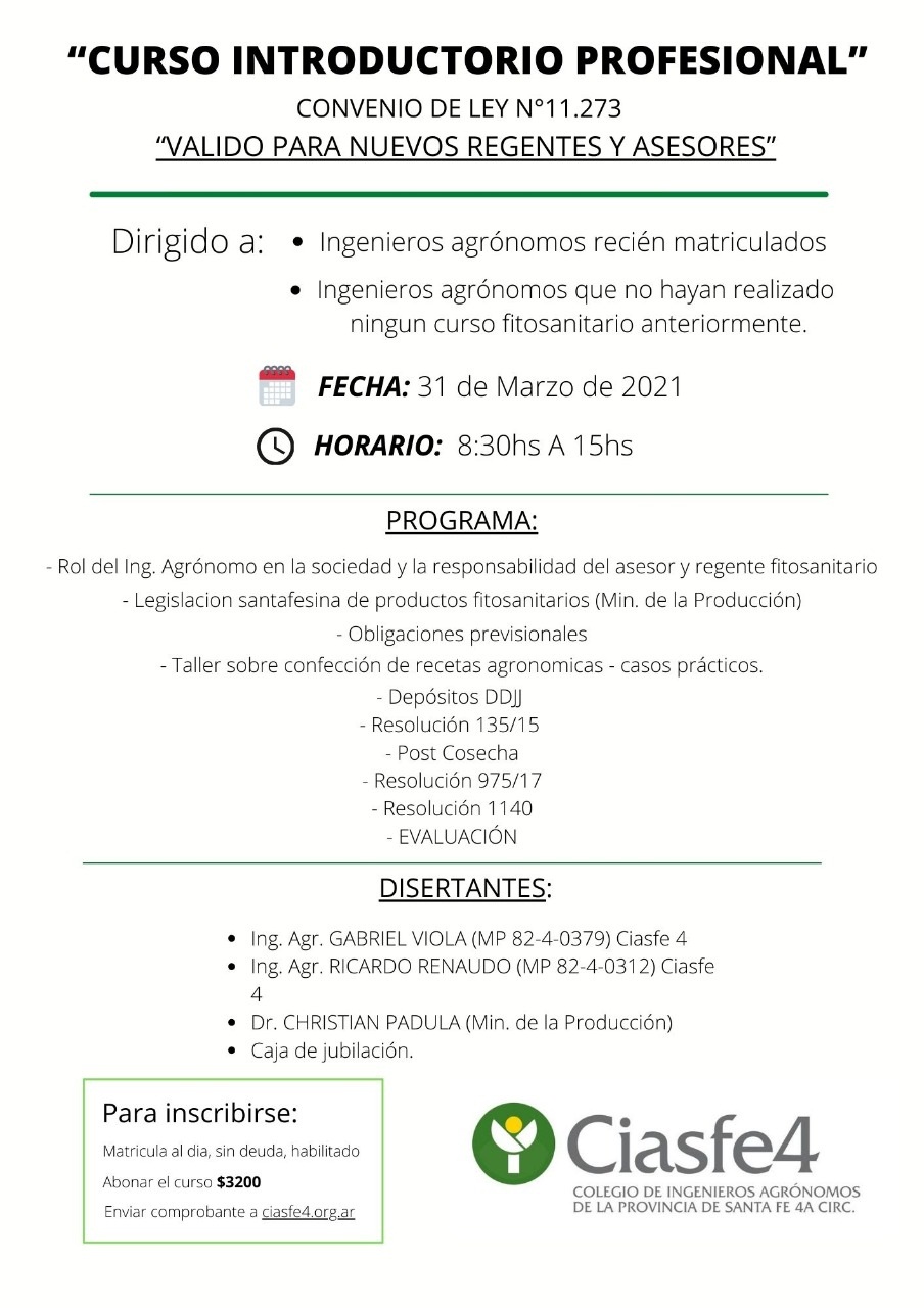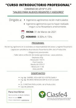 Curso Introductorio Profesional Convenio Ley 11.273 (valido para nuevos Regentes y Asesores)