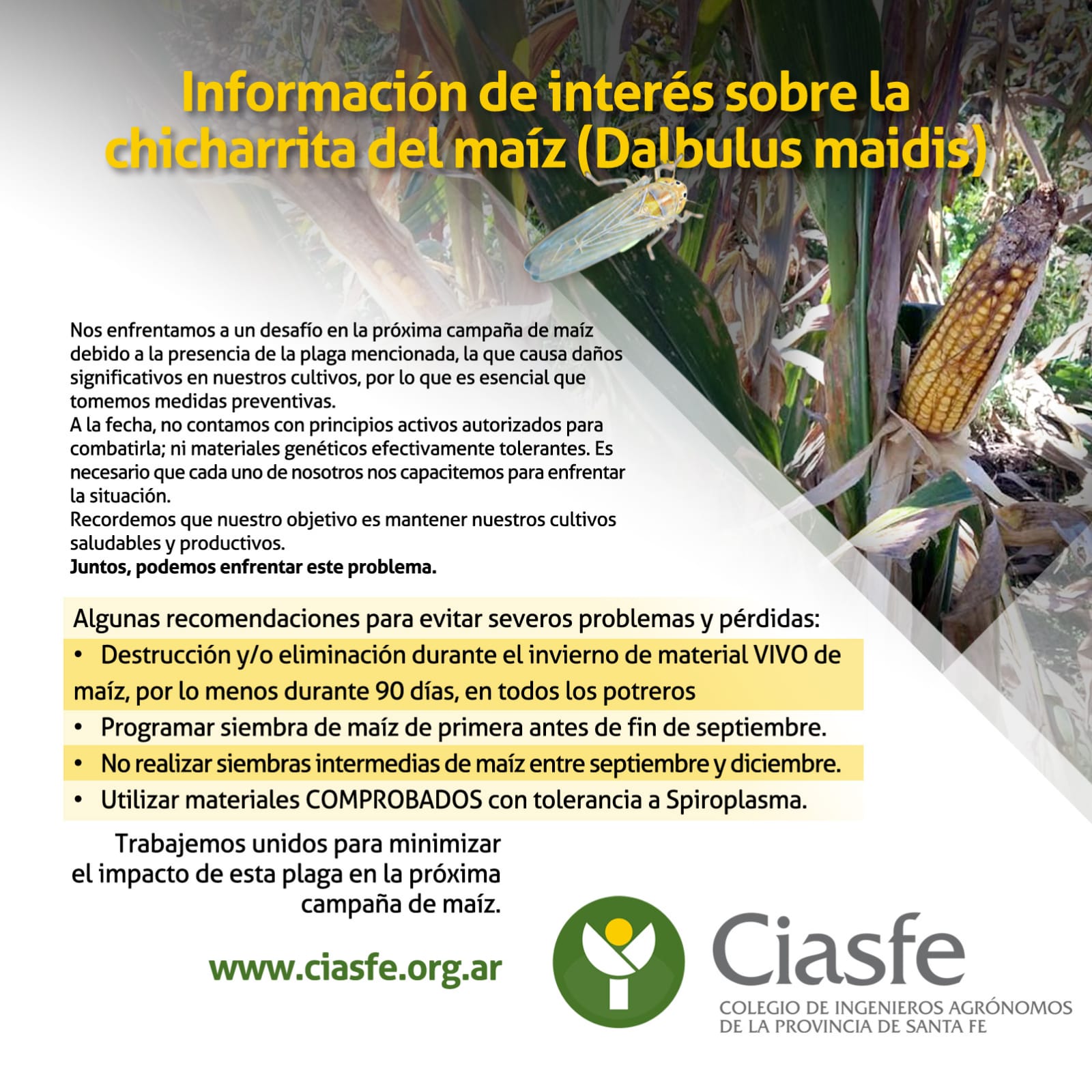 Recordamos desde el Ciasfe que frente a esta situación, un Ingeniero Agrónomo matriculado es el profesional idóneo que puede asesorar correctamente en torno a esta situación.
